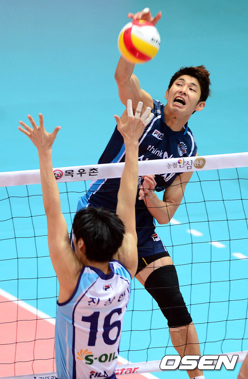 20일 오후 인천 도원체육관에서 열린 '2012-2013 NH농협 V-리그' 남자부 대한항공과 삼성화재의 경기 1세트 지태환이 공격을 시도하고 있다.