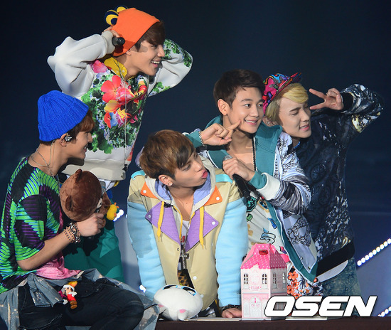 20일 저녁 서울 송파구 방이동 서울 올림픽공원 핸드볼 경기장에서 진행된 샤이니 컴백쇼 ‘드림걸(DREAM GIRL)’에서 샤이니가 팬을 위해 귀여운 포즈로 폴라로이드 사진을 찍고 있다.