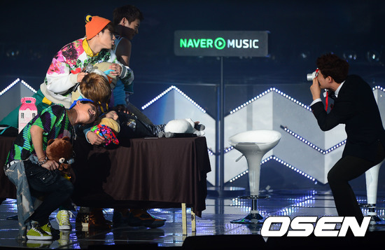 20일 저녁 서울 송파구 방이동 서울 올림픽공원 핸드볼 경기장에서 진행된 샤이니 컴백쇼 ‘드림걸(DREAM GIRL)’에서 샤이니가 팬을 위해 섹시포즈로 폴라로이드 사진을 찍고 있다.