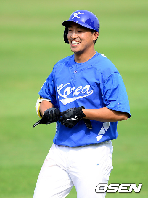 4회초 무사에서 대표팀 손아섭이 투수앞 땅볼에 1루에서 세이프되며 미소짓고 있다./jpnews@osen.co.kr