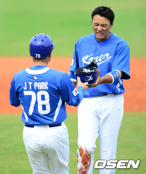 3회초 1사 1루에서 대표팀 이승엽이 이대호의 내야땅볼에 2루에서 포스아웃되고 아쉬워하고 있다. 이대호는 병살./jpnews@osen.co.kr