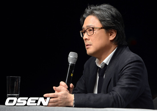 21일 오전 서울 남산 하얏트 호텔에서 진행된 영화 '스토커' 미아 바시코브스카 내한 기자회견에서 박찬욱 감독이 취재진의 질문에 답을 하고 있다.