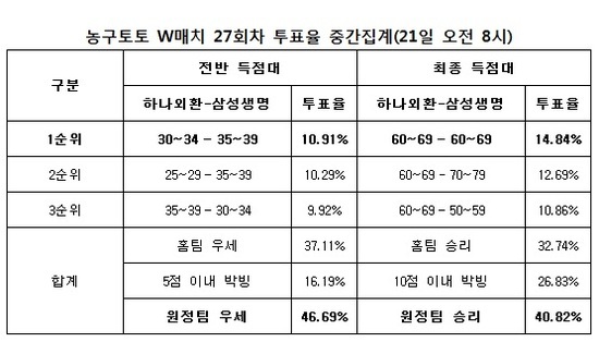 한편 농구토토 W매치 27회차는 경기시작 10분전인 22일 오후 4시 50분 발매가 마감된다.