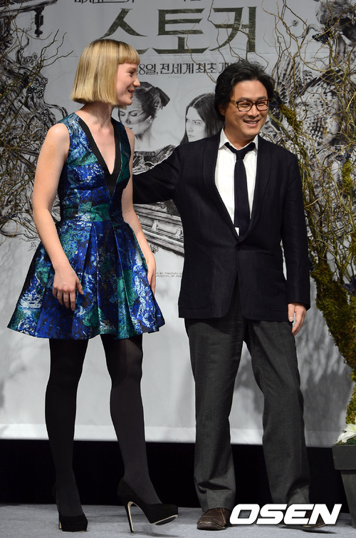 21일 오전 서울 남산 하얏트 호텔에서 진행된 영화 '스토커' 미아 바시코브스카 내한 기자회견에서 미아 바시코브스카와 박찬욱 감독이 포토월을 빠져나가고 있다.