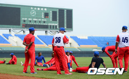 쿠바 대표팀 선수들이 그라운드에서 몸을 풀고 있다.