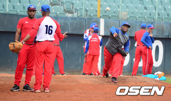 쿠바 대표팀 선수들이 불펜 피칭을 하고 있다.