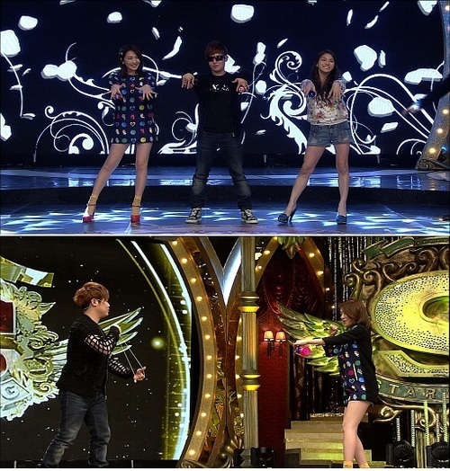이에 맞서 카라는 히트곡 ‘판도라’에 맞춰 요요 퍼포먼스에 도전했다. 강지영이 다양한 요요 동작을 펼친 가운데, 박규리는 시종일관 풀린 요요를 감으면서도 특유의 당당함을 잃지 않는 모습으로 녹화장을 웃음바다로 만들었다는 후문이다.