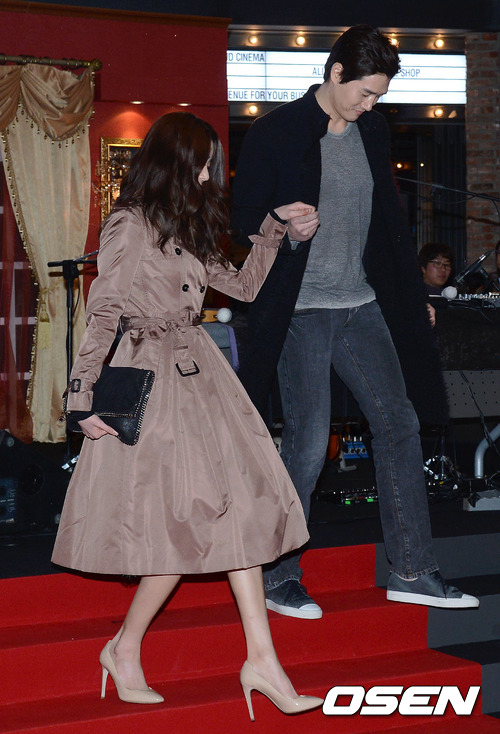21일 오후 여의도 CGV에서 진행된 영화 '스토커' 레드카페 및 VIP시사회에서 김효진과 유지태가 포토월을 빠져나가고 있다.