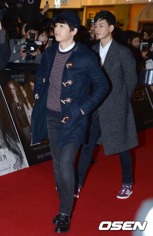 21일 오후 여의도 CGV에서 진행된 영화 '스토커' 레드카페 및 VIP시사회에서 송중기과 임주환이 레드카펫을 밟고 있다.