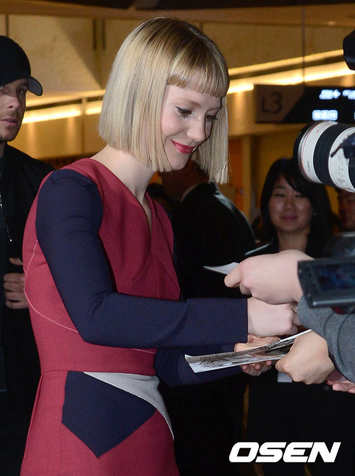 21일 오후 여의도 CGV에서 진행된 영화 '스토커' 레드카페 및 VIP시사회에서 미아 바시코브스카가 팬들에게 사인을 해주고 있다.