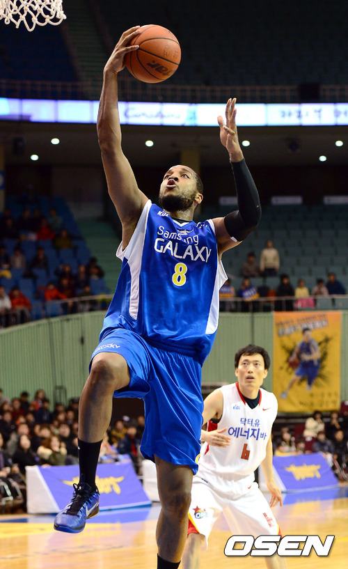 21일 오후 서울 잠실 실내체육관에서 열린 'KB 국민카드 2012-2013 프로농구' 서울 삼성과 고양 오리온스의 경기, 2쿼터 삼성 타운스가 골밑 돌파 후 레이업슛을 시도하고 있다.