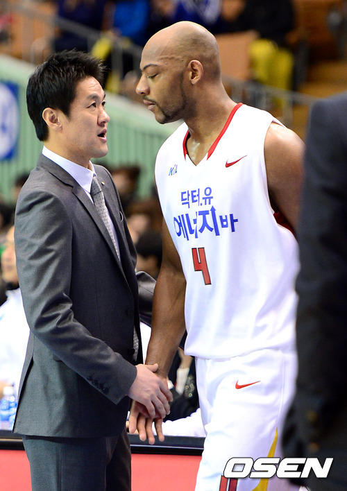 21일 오후 서울 잠실 실내체육관에서 열린 'KB 국민카드 2012-2013 프로농구' 서울 삼성과 고양 오리온스의 경기, 김병철 코치가 윌리엄스와 이야기를 나누고 있다.