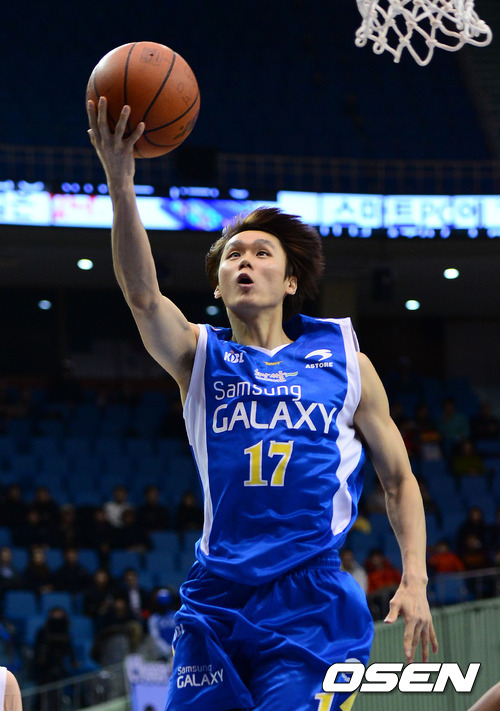 21일 오후 서울 잠실 실내체육관에서 열린 'KB 국민카드 2012-2013 프로농구' 서울 삼성과 고양 오리온스의 경기, 2쿼터 삼성 이시준이 레이업슛을 시도하고 있다.