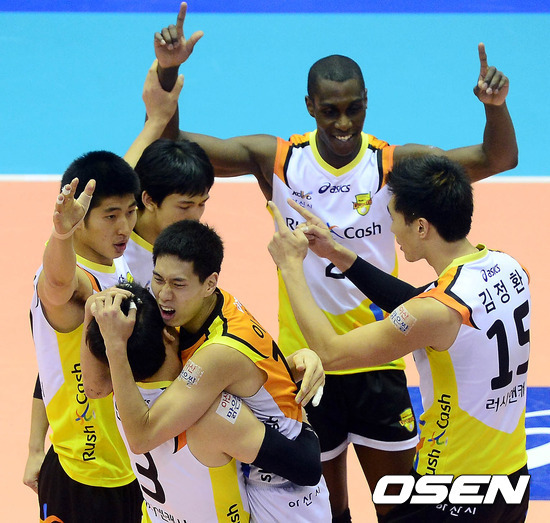 역전승으로 1세트를 따낸 러시앤캐시는 까메호를 뺀 LIG손해보험을 매섭게 몰아치며 2세트 역시 25-19로 승리, 세트스코어 2-0을 만들었다. 승기를 잡은 러시앤캐시는 3세트 들어 까메호를 다시 투입한 LIG손해보험의 반격에 고전하기도 했지만 20점대 이후 집중력을 발휘하며 LIG손해보험을 침몰시켰다.