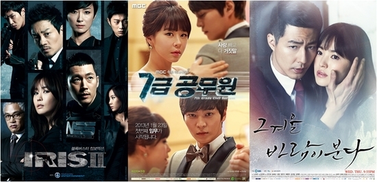 MBC ‘7급공무원’과 KBS 2TV ‘아이리스Ⅱ’가 훈풍을 맞은 SBS ‘그 겨울, 바람이 분다’에 밀려 시청률이 동반 하락했다.