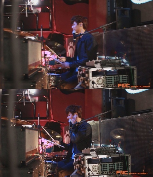 이는 한 지상파 음악 프로그램 사전 녹화 당시 촬영한 것. 강민혁의 올 라이브 드럼 연주는 물론 팬들과 호흡하는 모습이 담겼다. 그는연주 중간 중간 코러스에 참여, 멤버들의 흥을 돋우기도 했다.
