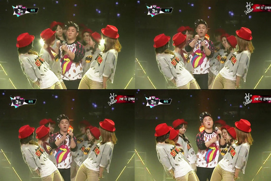 가수 허각이 1세대 걸그룹 핑클로 변신, 안무미션 팬서비스를 선보였다.