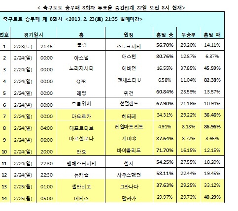 축구토토 승무패 8회차 투표율 중간집계 결과