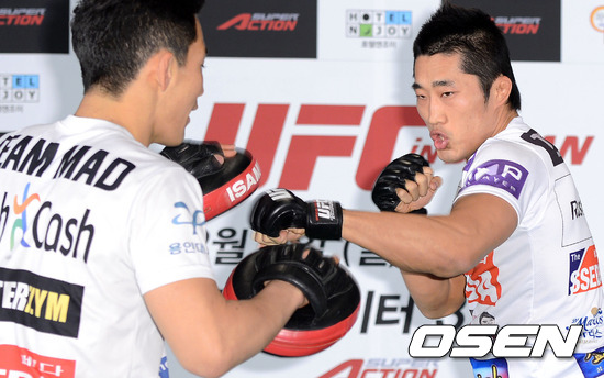 22일 오후 서울 상암동 CJ E&M센터에서 열린 'UFC in JAPAN' 출정식에서 김동현이 오픈워크아웃을 펼치고 있다.