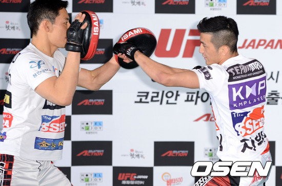 22일 오후 서울 상암동 CJ E&M센터에서 열린 'UFC in JAPAN' 출정식에서 강경호가 오픈워크아웃을 펼치고 있다.