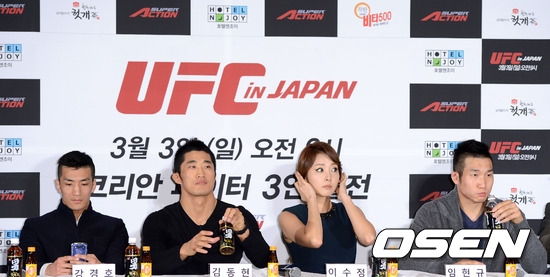 22일 오후 서울 상암동 CJ E&M센터에서 열린 'UFC in JAPAN' 출정식에서 강경호, 김동현,이수정, 임현규가 기자회견을 갖고 있다.