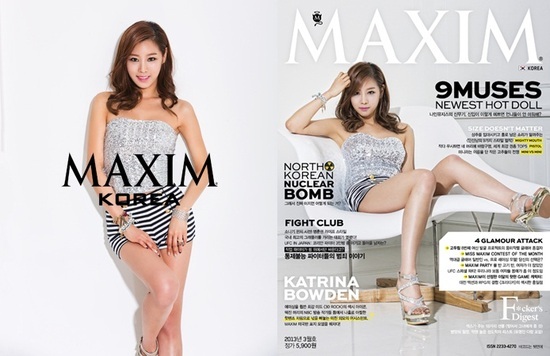 그룹 나인뮤지스의 손성아가 남성 월간지 '맥심'의 3월호 표지 모델로 등장, 섹시미를 마음껏 발산했다.