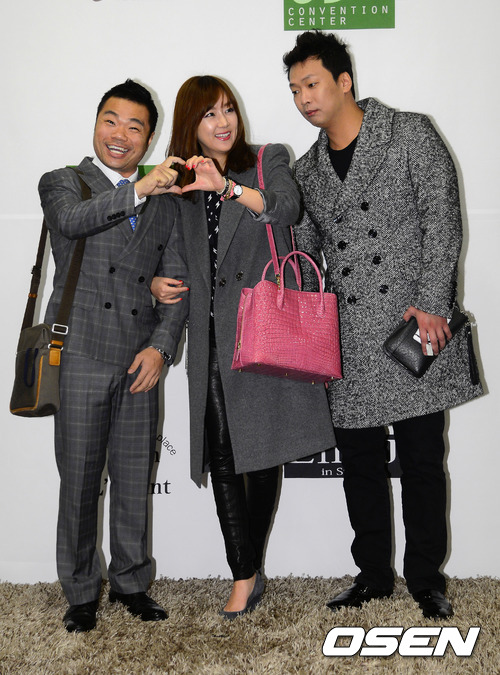 22일 오후 서울 여의도 63시티에서 열리는 윤형빈·정경미 결혼식에 하객으로 참석한 정종철, 김지혜, 박준형이 포토타임을 갖고 있다.