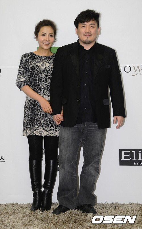 22일 오후 서울 여의도 63시티에서 열리는 윤형빈·정경미 결혼식에 하객으로 참석한 현진영, 오서은 부부가 포토타임을 갖고 있다.