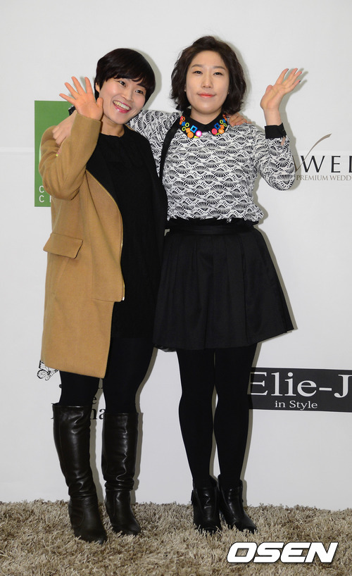 22일 오후 서울 여의도 63시티에서 열리는 윤형빈·정경미 결혼식에 하객으로 참석한 김헤선, 김영희가 포토타임을 갖고 있다.
