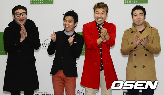 22일 오후 서울 여의도 63시티에서 열리는 윤형빈·정경미 결혼식에 하객으로 참석한 변승윤, 조지훈, 노홍철, 황현희가 포토타임을 갖고 있다.