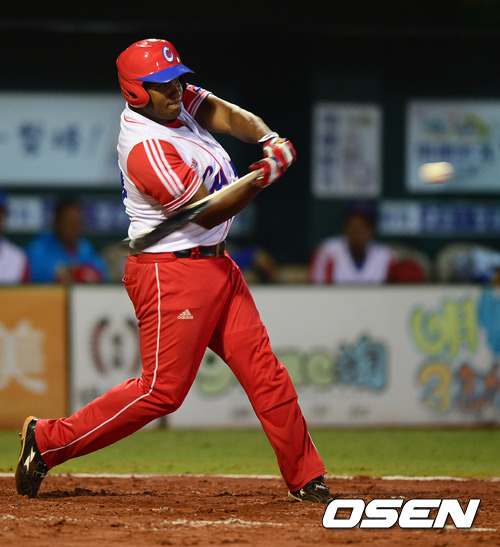 2회초 쿠바 알프레도 데스파이녜가 스리런 홈런을 날리고 있다.