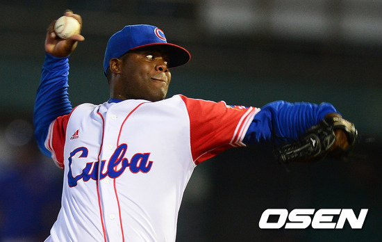 쿠바 선발 야디어 페드로소가 역투하고 있다.
