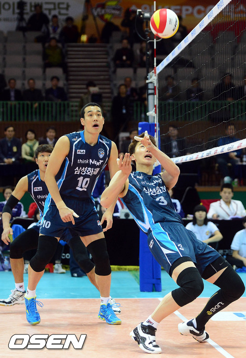 23일 오후 수원 실내체육관에서 열린 '2012-2013 NH농협 V-리그' 남자부 KEPCO와 삼성화재의 경기 3세트 박철우가 공을 살리고 있다.