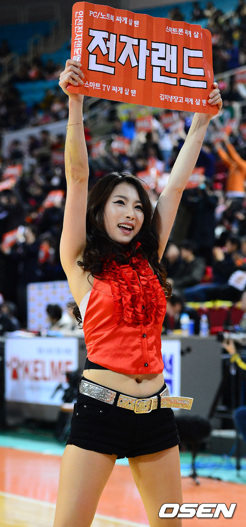 전자랜드 치어리더가 코트 위에서 열띤응원을 펼치고 있다. / rumi@osen.co.kr