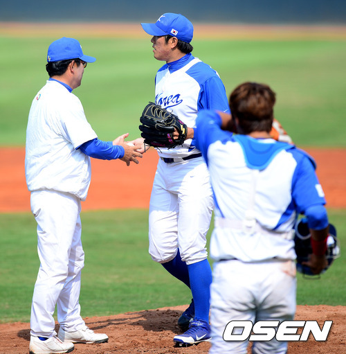 5회초 2사 1,2루에서 대표팀 유원상이 역전을 허용하고 강판당하고 있다. /jpnews@osen.co.kr