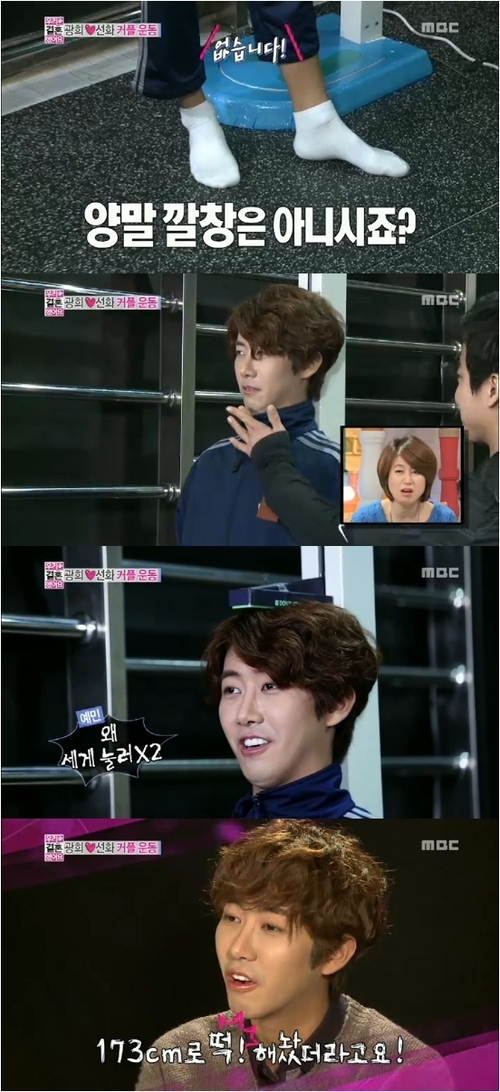 그는 이날 가상아내 한선화와 헬스장을 찾아 키를 쟀다. 그는 SBS ‘강심장’에서 자신의 키가 175cm라고 말했지만 173cm로 측정돼 키 논란이 불거진 바 있다.