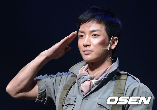 23일 오후 서울 중구 장충동 국립극장 해오름극장서 열린 군 창작뮤지컬 'The Promise(프라미스)'의 관객과의 대화에서 이특이 거수경례를 하고 있다.