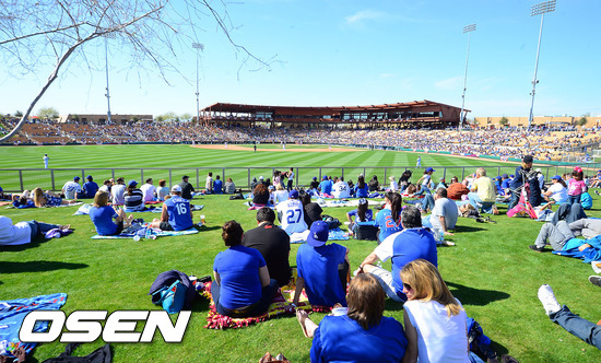 [OSEN=글렌데일(미국 애리조나), 곽영래 기자] 24일(한국시간) 미국 애리조나 글렌데일 캐멀백 랜치 스타디움에서 열린 2013 메이저리그 LA 다저스와 시카고 화이트삭스의 시범경기, 수많은 팬들이 잔디에 누워 경기를 관전하고 있다