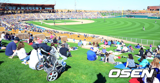 [OSEN=글렌데일(미국 애리조나), 곽영래 기자] 24일(한국시간) 미국 애리조나 글렌데일 캐멀백 랜치 스타디움에서 열린 2013 메이저리그 LA 다저스와 시카고 화이트삭스의 시범경기, 수많은 팬들이 잔디에서 경기를 관전하고 있다