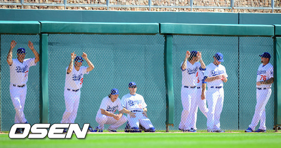 [OSEN=글렌데일(미국 애리조나), 곽영래 기자] 24일(한국시간) 미국 애리조나 글렌데일 캐멀백 랜치 스타디움에서 열린 2013 메이저리그 LA 다저스와 시카고 화이트삭스의 시범경기, 불펜에서 다저스 선수들이 경기를 지켜보고 있다