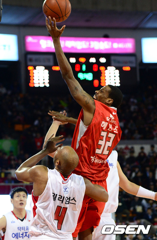24일 오후 서울 잠실학생체육관에서 열린 'KB 국민카드 2012-2013 프로농구' 서울 SK와 고양 오리온스의 경기, 1쿼터 SK 헤인즈가 오리온스 더블팀 수비를 뚫고 점프슛을 시도하고 있다.