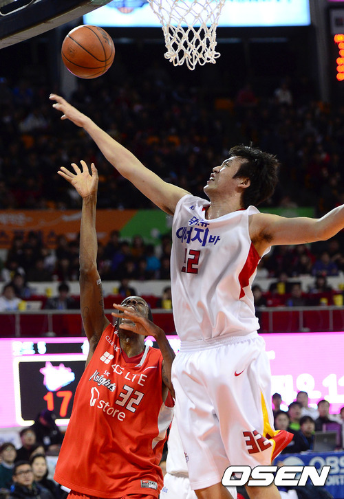24일 오후 서울 잠실학생체육관에서 열린 'KB 국민카드 2012-2013 프로농구' 서울 SK와 고양 오리온스의 경기, 2쿼터 오리온스 김승원이 SK 헤인즈의 레이업슛을 블로킹으로 막아내고 있다.