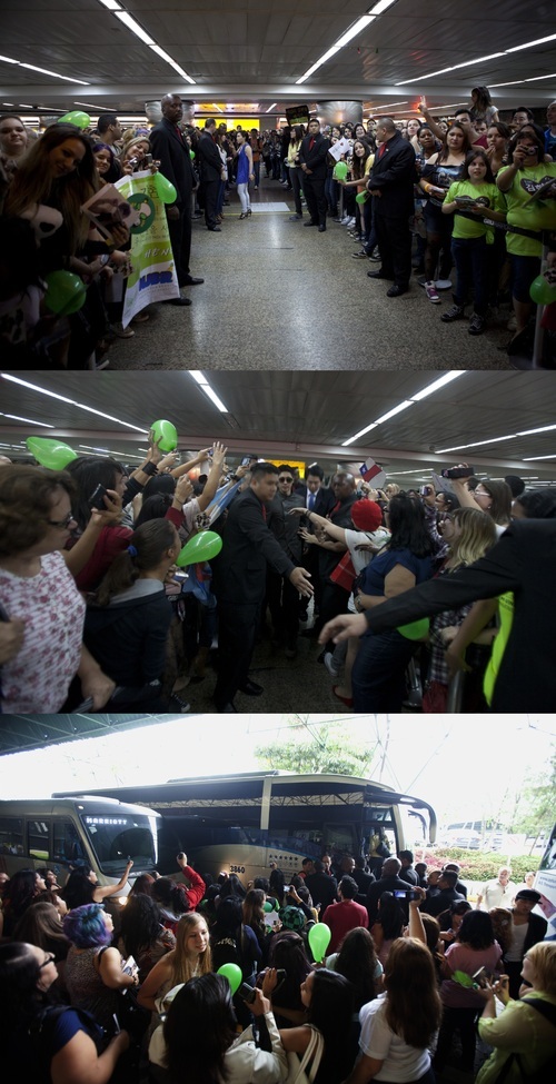 이날 과룰류스 국제공항은 이른 시간부터 김현중의 첫 번째 브라질 방문을 환영하기 위해 몰려든 수많은 남미 팬들로 인해 큰 혼잡을 빚었다. 특히 최근 브라질을 방문했던 해외 아티스트들의 방문 당시보다 2배 이상 많은 팬들이 몰려 안전을 위해 공항 직원과 현지 경호원들이 입국장에서 대기하고 있는 팬들의 안전을 위해 대거 투입되는 진 풍경을 연출하기도 했다.