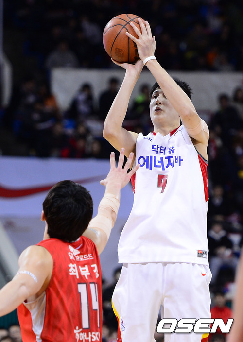 24일 오후 서울 잠실학생체육관에서 열린 'KB 국민카드 2012-2013 프로농구' 서울 SK와 고양 오리온스의 경기, 3쿼터 오리온스 최진수가 점프슛을 시도하고 있다.