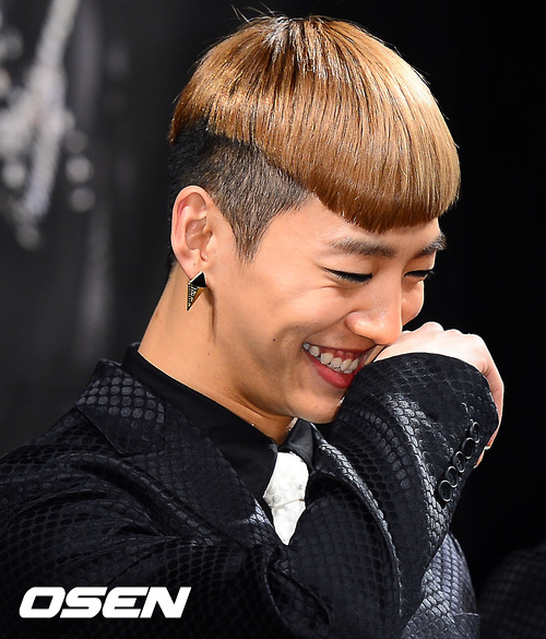 비에이피가 콘서트에 앞서서 기자회견을 갖던 중 방용국이 환하게 웃고 있다.