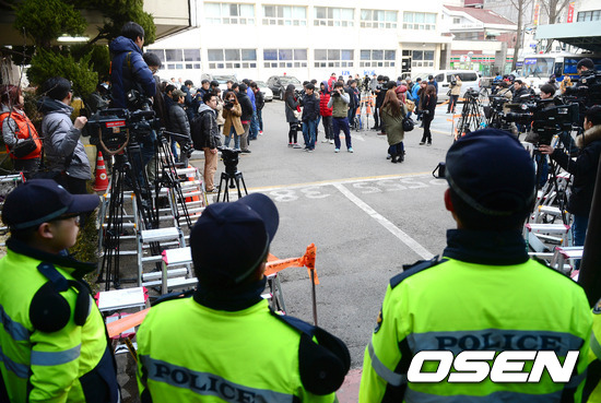 24일 오후 성폭행 혐의로 피소된 배우 박시후를 취재하기 위해 기다리던 취재진들이 경찰서 주차장에 모여있다.