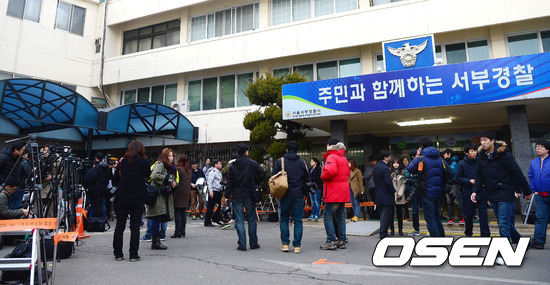 24일 오후 성폭행 혐의로 피소된 배우 박시후를 취재하기 위해 기다리던 취재진들이 경찰서 주차장에 모여있다.