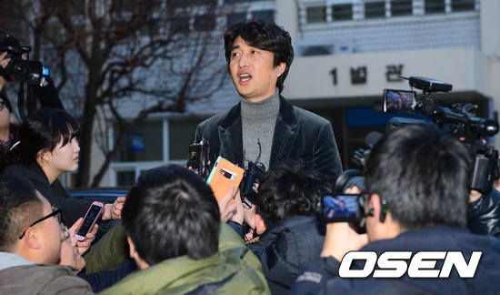 24일 오후 박시후 사건 담당 형사가 서부경찰서 주차장에서 취재진들에게 브리핑을 하고 있다.