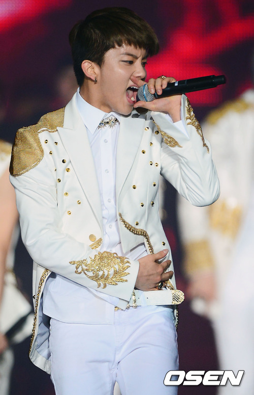 비에이피의 영재가 화려한 무대를 선보이고 있다.