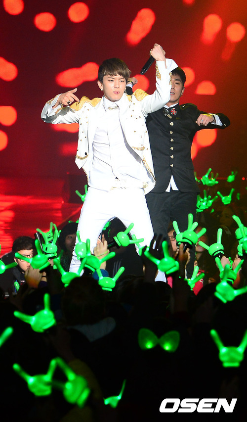 비에이피의 영재가 화려한 무대를 선보이고 있다.